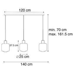 Een echte design eyecatcher, deze Qara. De hanglamp is afgewerkt met staal en smoke glas. Het smoke glas zorgt voor een speels effect in de ruimte. De hanglamp heeft een lengte 140 cm, een breedte van 25 cm en is verstelbaar in hoogte. Minimaal 70 cm en maximaal 161,5 cm hoog. Super handig, want op die manier kan je makkelijk zelf de hoogte van je lamp bepalen boven de eettafel of als eyecatcher in de hal. De montageplaat heeft een lengte van 120 cm, breedte van 6 cm en een hoogte van 2,5 cm. Je maakt Qara compleet met 3 lichtbronnen met ieder een E27 fitting (60 Watt), deze zijn niet inbegrepen. De lamp wordt inclusief snoer (121,5 cm) geleverd. Qara is dimbaar met een externe dimmer, deze is niet inbegrepen. Voeg deze mooie hanglamp toe aan jouw woonkamer, werkkamer of hal en haal een stukje design in huis!