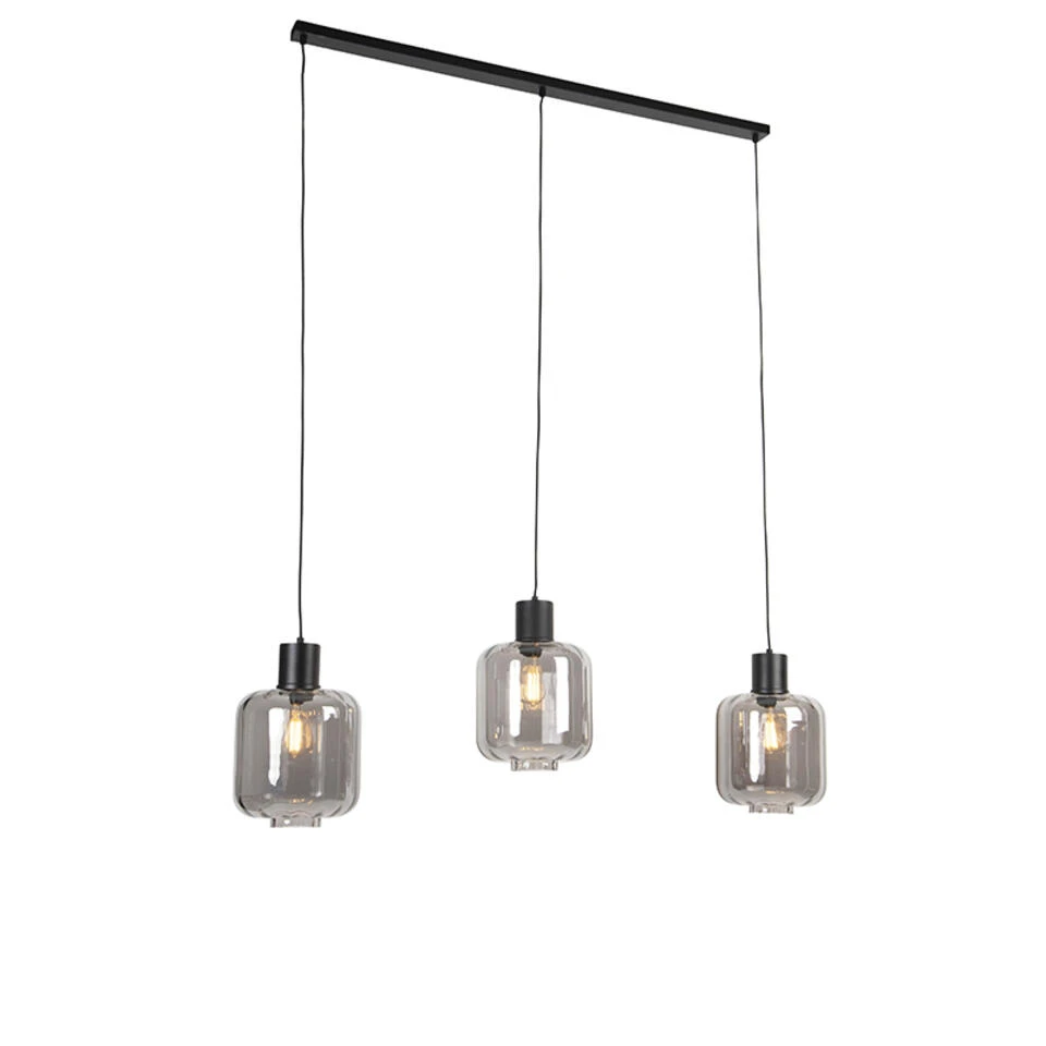 QAZQA Design Hanglamp Zwart Met Smoke Glas 3-lichts 161,5 Cm – Qara