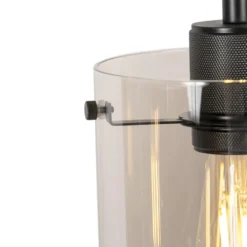 QAZQA Design Hanglamp Zwart Met Smoke Glas 4-lichts – Dome
