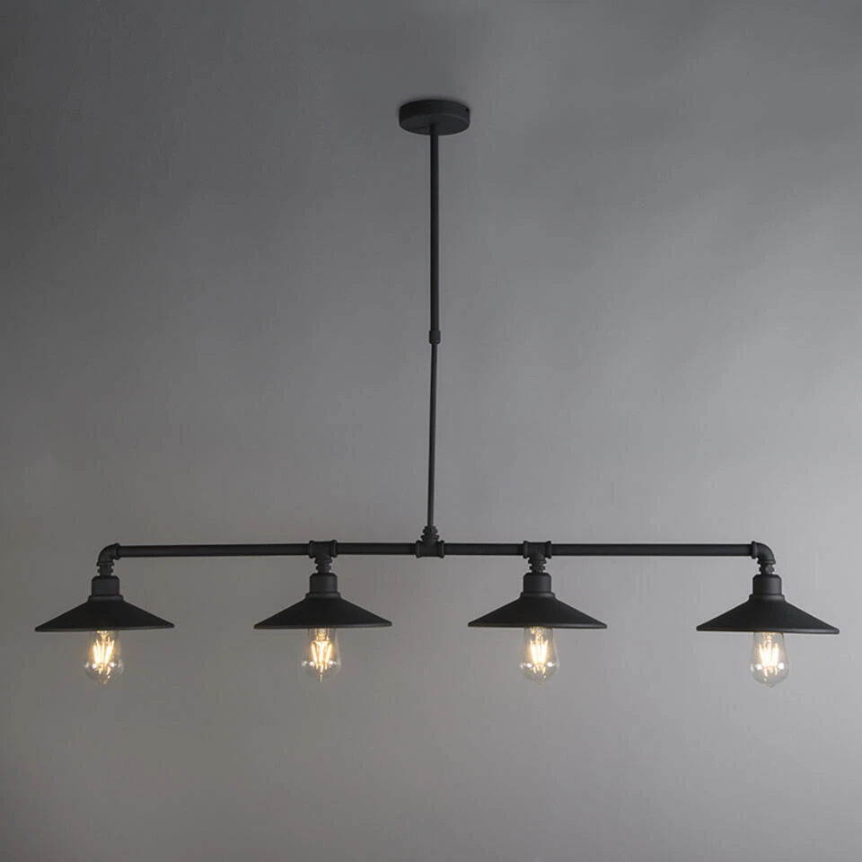 De Hanglamp 4 Laser is één hanglamp met vier gescheiden lichtbronnen waarmee je de eettafel perfect kunt verlichten. Deze stoere zwarte hanglamp is gemaakt van metaal en dat geeft deze lamp zijn robuuste en industriële uitstraling. De lamp is dimbaar (dimmer niet inbegrepen). De lamp heeft een minimale hoogte van 60 cm en een maximale hoogte van 90 cm, deze kun je na de installatie nog verstellen. Verder heeft hij een lengte van 130 cm en een breedte van 22 cm. Je maakt de lamp af met vier mooie lichtbron van fitting E27 (max. 60 Watt). Let op deze zijn niet inbegrepen. Houdt je van industrieel? Dan is deze Hanglamp 4 Laser zeker aan te raden.