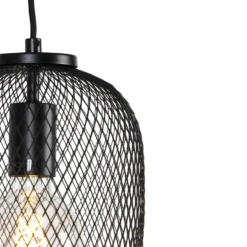 QAZQA Industriële Hanglamp Zwart 45 Cm 3-lichts – Bliss Mesh