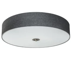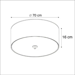 Een tijdloze ronde plafonnière met een kap een mooie grijze kleur. De stof die gebruikt is voor de kap is gemaakt van jute. De plafondlamp Drum Jute is prachtig afgewerkt met een matte glasplaat aan de onderzijde waardoor een rustig lichteffect gecreĂÂŤerd wordt in huis. De lamp heeft een diameter van 70 cm en een hoogte van 16 cm. De lamp is dimbaar met externe dimmer (dimmer niet inbegrepen). Je maakt je Drum Jute compleet met zes lichtbronnen passend in een E27 fitting (elk max. 40 Watt). Een aangename plafondlamp in elke ruimte in huis!