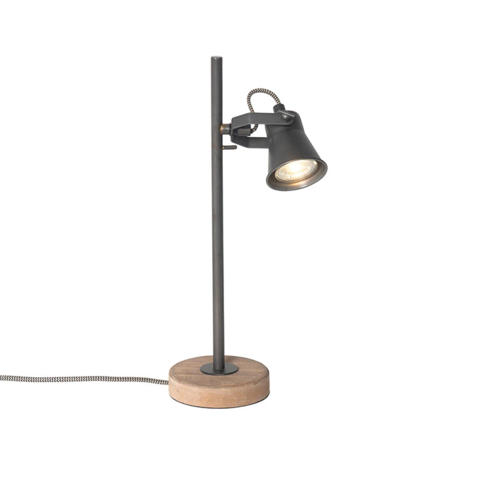 QAZQA Landelijke Tafellamp Zwart Met Hout – Jelle