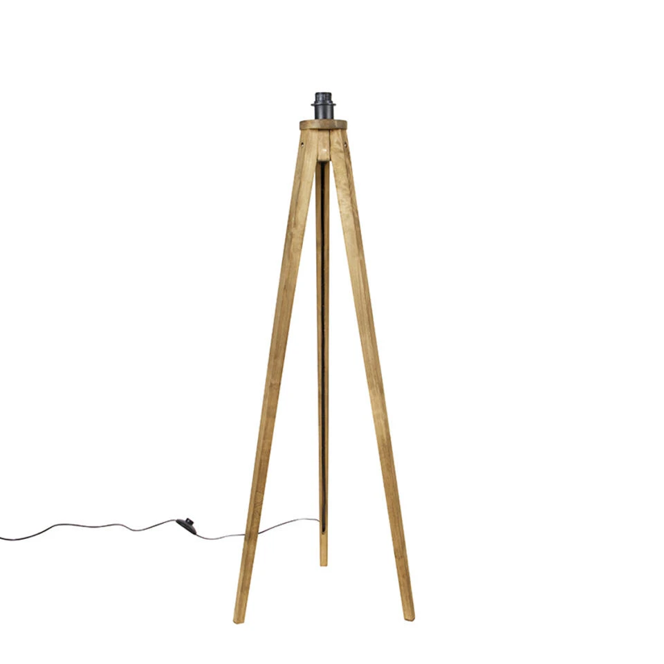 QAZQA Landelijke Vloerlamp Tripod Vintage Hout – Tripod Classic