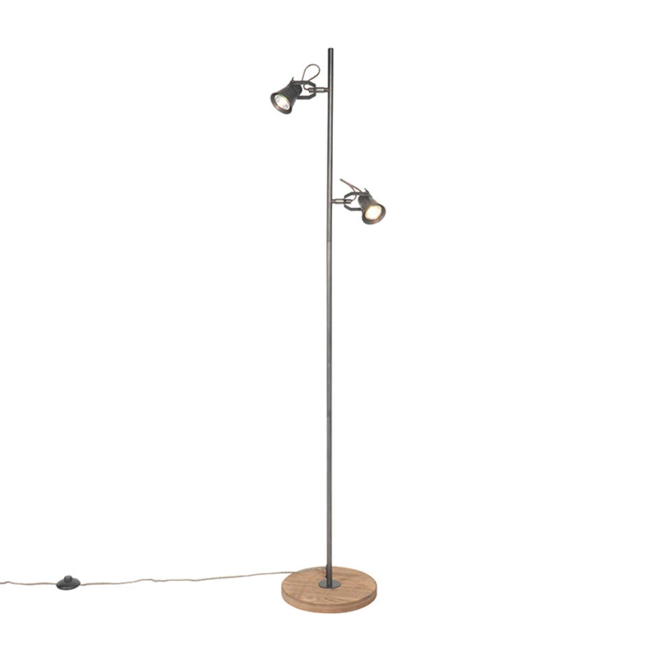 QAZQA Landelijke Vloerlamp Zwart Met Hout – Jelle