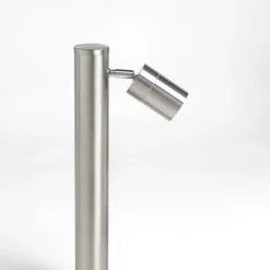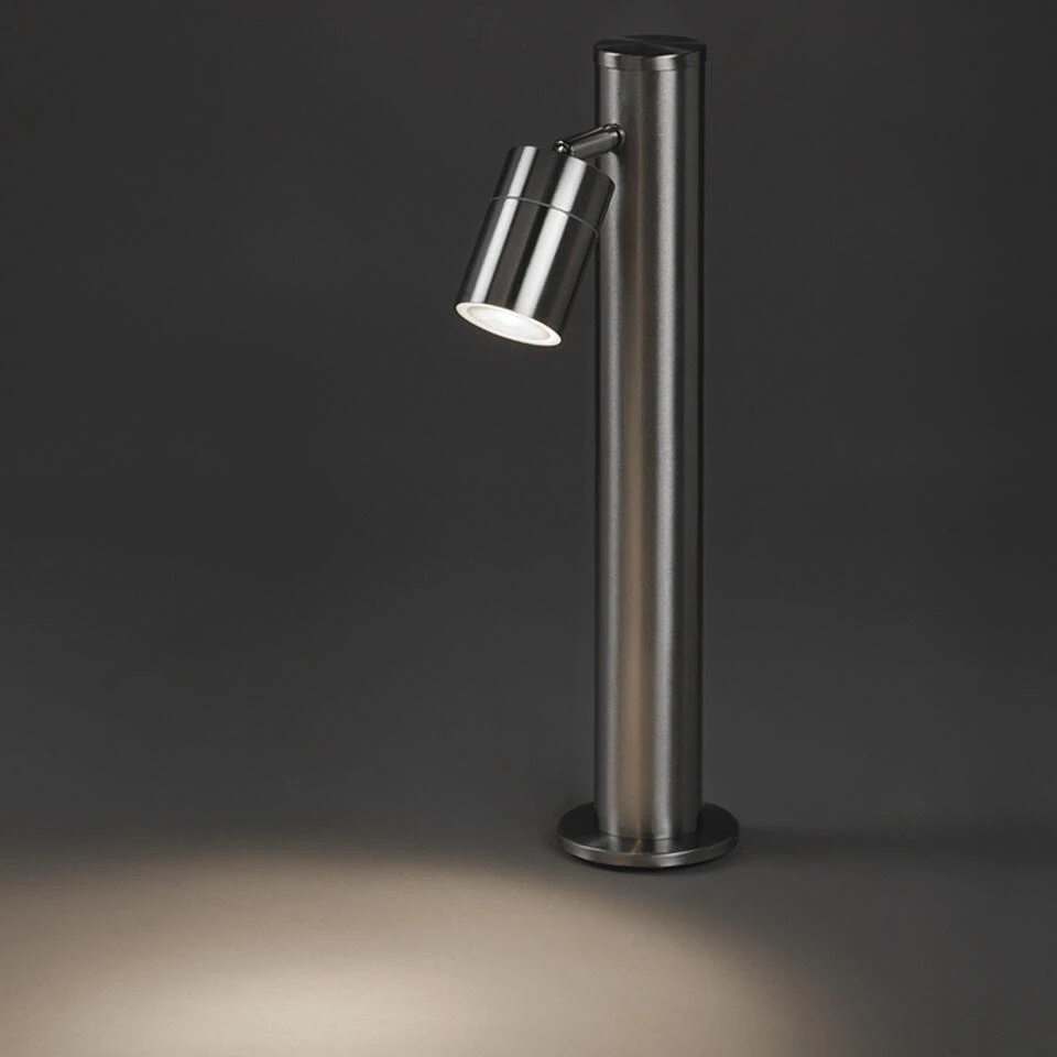 Deze buitenlamp Solo heeft een simplistisch en modern design. De spot is via het kogelscharnier gemakkelijk verstelbaar waardoor je het licht precies laat schijnen waar je wil. De lamp is gemaakt van RVS en met IP-waarde 44 is deze spatwaterdicht. Hierdoor kan deze kleine krachtpatser gemakkelijk buiten geplaatst worden. De lamp heeft een hoogte van 45,5 cm en een breedte van 18 cm. De voet heeft een diameter van 10 cm. Je maakt de lamp af met een lichtbron met een GU10 fitting (max. 35 Watt), deze moet wel nog los bijbesteld worden. De lamp is dimbaar met een externe dimmer (dimmer niet inbegrepen). Mooi, modern en strak design heeft deze buitenlamp Solo.