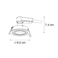 Een strakke en tijdloze inbouwspot voor in elke ruimte in huis, deze Rondoo. Hij heeft een diameter van 9,2 cm en een hoogte van 7,4 cm. De inbouwmaten: een diepte van 10 cm en een diameter van 8 cm. Maak hem compleet met een GU10 lichtbron va nmax. 50 Watt. Let op: deze lichtbron is niet inbegrepen en kan je nog apart bij bestellen op de webshop. Hij is tevens dimbaar met een externe dimmer (bv. je wandschakelaar). Hij is gemaakt van aluminium en afgewerkt in een zwarte kleur. Geniet jarenlang van deze topper als basisverlichting in de keuken, de woonkamer of in de hal!