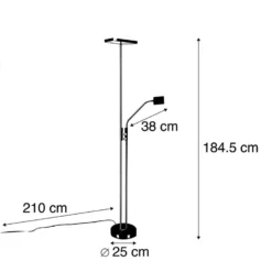 Zeer functionele vloerlamp met leesarm. Deze Jazzy heeft een hoogte van 184,5 cm. De voet heeft een diameter van 25 cm. Hij wordt met kabel geleverd waarvan de lengte 210 cm is. Beide lampen zijn afzonderlijk van elkaar dimbaar. De leesarm is d.m.v. twee flexibele delen zeer goed verstelbaar. De vloerlamp beschikt over een uplighter inclusief LED (geïntegreerd in het armatuur). Dit LED heeft een lichtopbrengst van 2700 Kelvin en 1700 lumen. De leesarm beschikt over dezelfde lichtopbrengst. Deze lichtpunten zijn afzonderlijk van elkaar dimbaar. Gemiddeld gaat de lamp 30.000 branduren mee. Een super functionele vloerlamp om te lezen en dankzij de dimfunctie op de lamp wordt het een sfeermaker in je interieur!