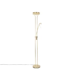 QAZQA Moderne Vloerlamp Messing Met Leeslamp Incl. LED Dim To Warm – Diva