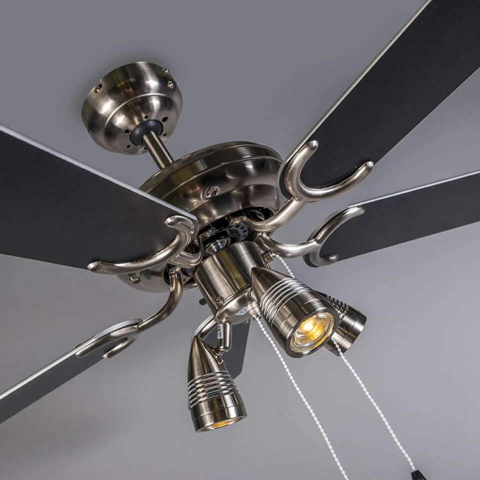 Moderne en stijlvolle multi-functionele plafondventilator met vijf houten bladen afgewerkt in grijs en zwart. De lengte van een enkel blad bedraagt 42,5cm. Je kiest zelf welke kant de finishing touch maakt! De armatuur is staal. De Mistral 42 is ideaal voor iedere ruimte waar je een koel en verfrissend briesje wilt, past perfect in een moderne inrichting. De ventilator is voorzien van twee kettingen. Een om het licht te regelen en de ander om de ventilator te regelen. Verder heeft deze Mistral 42 plafondventilator een zomerstand voor verkoeling en een winterstand om warme lucht naar beneden te circuleren Met een breedte van 110 cm is deze ventilator breed genoeg om een goede luchtcirculatie in de door jouw gekozen ruimte te garanderen. De montageplaat heeft een diameter van 16 cm. Met 43.5 decibel is deze plafondventilator stil met een AC motor en zorgt ervoor dat je geniet van een ventilator van hoge kwaliteit en energiezuinige verlichting op hetzelfde moment. De perfecte plafondventilator voor jouw slaapkamer, woonkamer of kantoor voor een verfrissende en koele ruimte. Om de Mistral 42 te laten stralen zijn er nog drie lichtbronnetjes nodig van maximum 50 Watt (GU10 fitting).