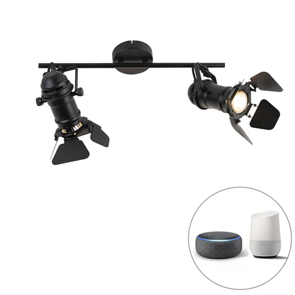QAZQA Smart Spot Zwart Incl. WiFi GU10 2-lichts Met Kleppen – Movie
