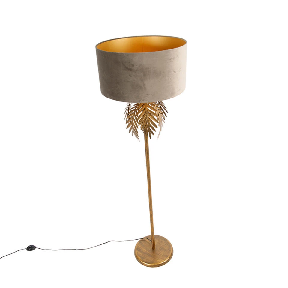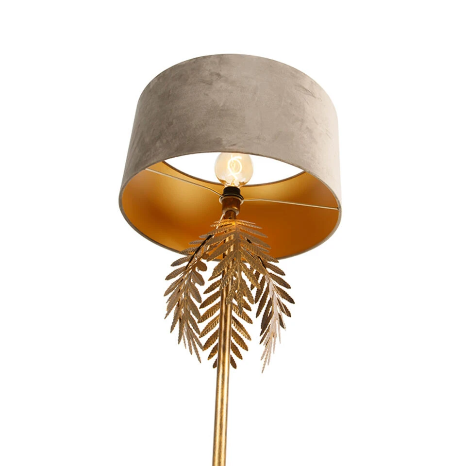 QAZQA Vintage Vloerlamp Goud Met Velours Kap Taupe 50 Cm – Botanica