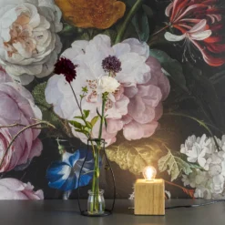 De nachtlamp zorgt voor een rustieke look dankzij het design van hout