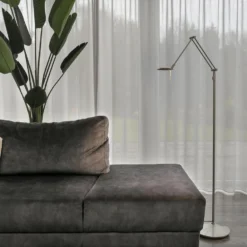 Stalen vloerlamp uit de zodiac LED serie. De lange leesarm beschikt over twee scharnieren en een draai-en kantelbare reflector. Voorzien van een 6 watt lichtbron, te vervangen door de fabrikant, met kleurtemperatuur van 2700 Kelvin en lichtopbrengst van 600 Lumen. De bediening van de lamp gaat middels een pushdimmer, deze zit ca. op 100 centimeter hoogte. De 2108ST heeft een maximale hoogte van 170 centimeter en de diameter van de voet is 25 centimeter. Door de lange arm, de kleur van het licht en de grote lichtopbrengst is het een prettige lamp om bij te lezen of voor uw handwerk. Wordt geleverd inclusief snoer van 210 centimeter.