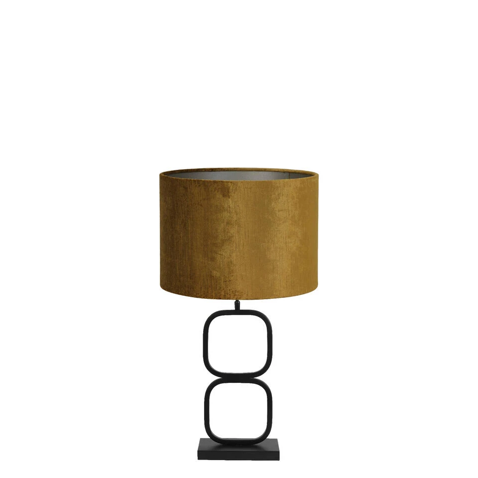 Op zoek naar de perfecte tafellamp inclusief lampenkap? De Lutika is een moderne zwarte lampvoet van metaal en wordt geleverd inclusief cilinder lampenkap Gemstone, Dit is een gouden lampenkap, gemaakt van een luxe grove velvet stof, De mat zwarte lampvoet past in ieder interieur en is daarom een gegarandeerd tijdloze tafellamp in de woonkamer of als nachtlampje in de slaapkamer, Doordat de voet inclusief kap wordt geleverd, hoef jij je geen zorgen te maken of de verhoudingen wel kloppen, De kap past perfect op de unieke lampvoet met 2 metalen vierkanten, De totale afmeting van de tafellamp is Ø30×67,5 cm,