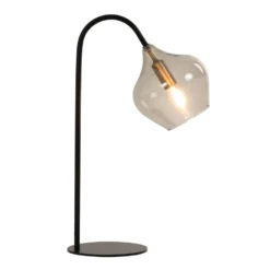 Tafellamp Rakel heeft een stijlvolle uitstraling en valt op door de lampenkap van glas. Het frame van de lamp is gemaakt van zwart geborsteld metaal en heeft een matte afwerking. De kap van de lamp is gemaakt van glas en heeft een mooie smoke waas. Dit geeft de lamp in combinatie met de gouden E27 fitting een luxe en moderne uitstraling. De lamp zorgt voor sfeervol licht door de smoke afwerking. Plaats deze tafellamp op je nachtkastje of gebruik deze als bureaulamp in het kantoor. De opties zijn eindeloos. De afmeting van dit Light & Living product is 28x17x50,5 cm. De lampvoet is geschikt voor een lichtbron met een E14 fitting.