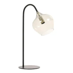 - De voet is gemaakt van stevig zwart metaal en de kap van luxe glas