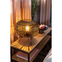 Deze lamp is gemaakt van bamboe, is zwart van kleur en heeft een afmeting van 31xØ33 cm. De Split tafellamp staat op zwarte metalen pootjes en heeft een mooi open ontwerp, waardoor je goed de lichtbron kunt zien. Kies dus een mooie LED-lichtbron uit voor een leuk speels effect! Deze natuurlijke tafellamp staat prachtig op je nachtkastje, op een mooi dressoir of op een lage kast. Tafellamp Split is een handgemaakte lamp met een bohemian/landelijke stijl en zal een echte blikvanger zijn in jouw interieur!