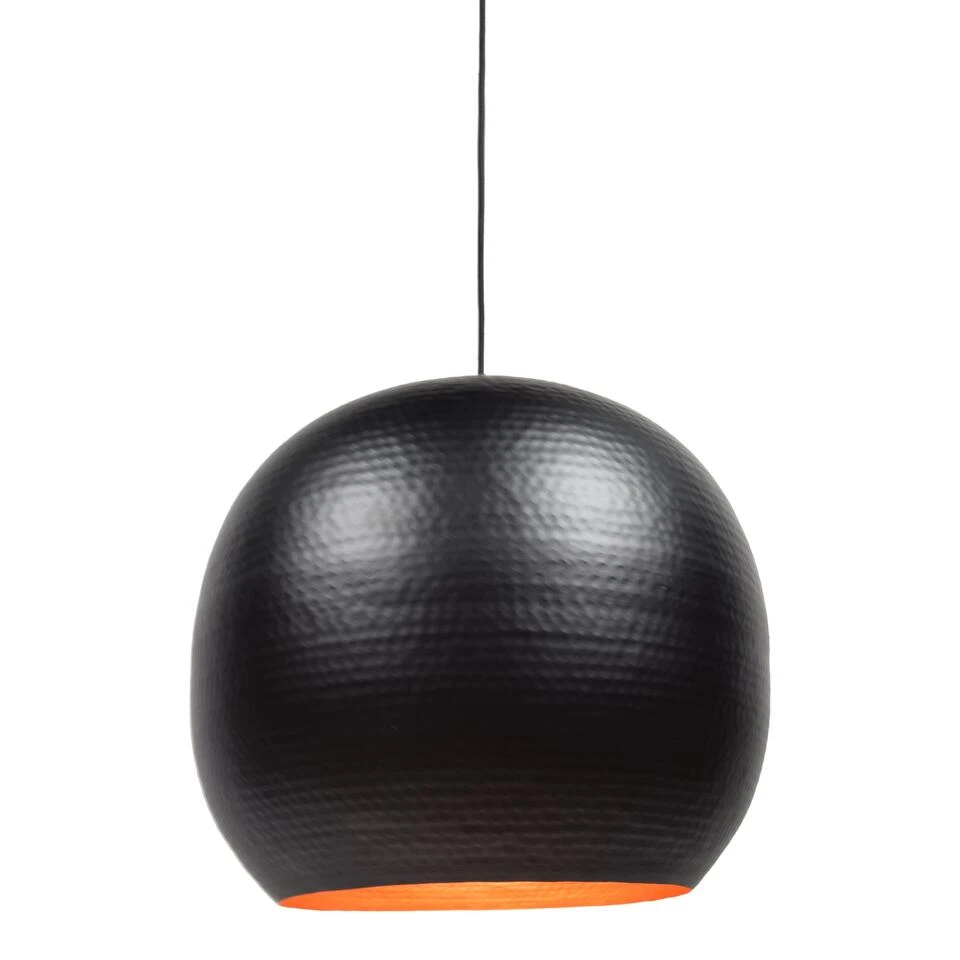 Dit is de grootste maat van deze serie. De totale hoogte van dit armatuur is 155 cm en de metalen kap heeft een diameter van 40 cm. Kleur: zwart met een koper kleurige binnenzijde. Geschikt voor een lichtbron van maximaal 60 Watt E27.