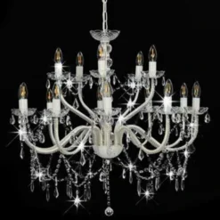 De chique kroonluchter met kristallen, glimmende kralen maakt met zijn klassieke en elegante ontwerp zeker een gedurfd visueel statement en is een blikvanger in je interieur. Hij is geschikt voor zowel residentieel als commercieel gebruik.