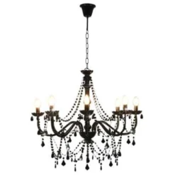 VidaXL Kroonluchter Met Kralen 8xE14 Zwart