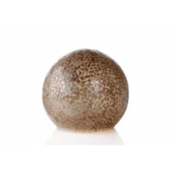 Deze grote tafellamp Wangi Gold is een bol vormige tafellamp met een hoogte van 30 cm en een doorsnede van 40 cm. De kleur is een combinatie van bruin, creme en goud, waarvan de schelpen zijn ingelegd in fiber glas. Dit armatuur is geschikt voor 1x LED lichtbron met een E14 fitting.