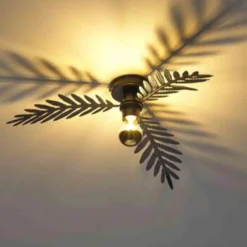 Leuke tropische plafondlamp die is voorzien van 3 gebogen metalen bladen. Dit kunstwerk aan het plafond is verkrijgbaar in verschillende kleuren en maten en geeft gegarandeerd sfeer in elke ruimte.